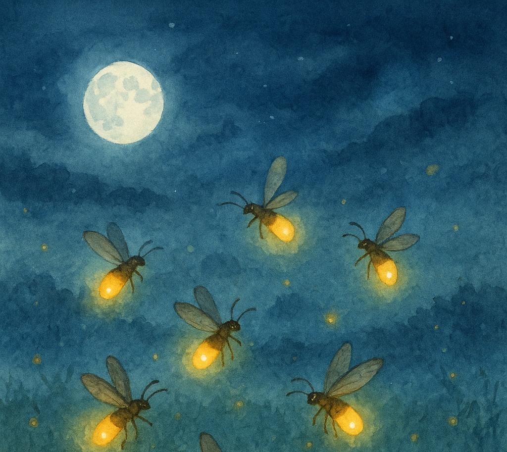 Niedaleko stąd, na cichej łące, gdzie trawa falowała jak zielone morze, mieszkała maleńka świetliczka, o imieniu Luna. Była najmniejsza ze wszystkich świetlików, a do tego jej światełko było słabsze niż innych – tak maleńkie, że czasami sama zastanawiała się, czy w ogóle ktoś je może dostrzec.